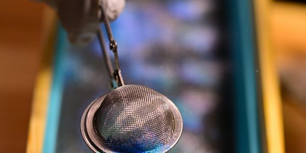 Crafting beauty: our artisan dusts mica to create a one-of-a-kind design on a small batch of cold processed soap.